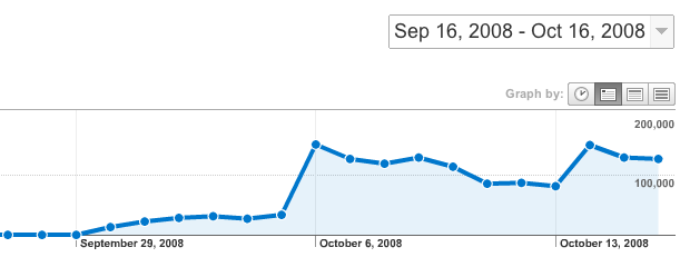 By this graph, it looks like we could approach 3 million pageviews/month in the near future, if the trends hold true.